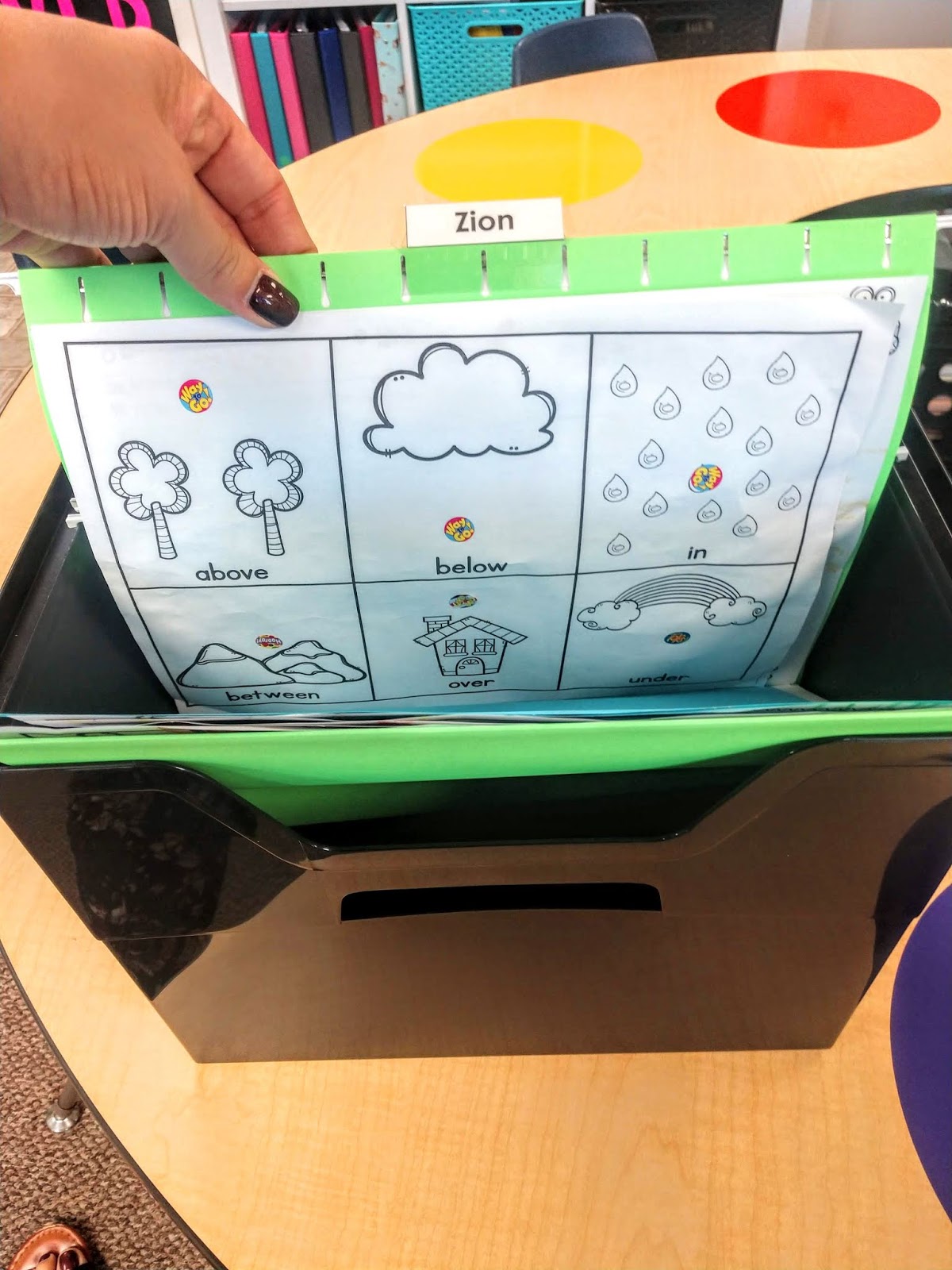 Remember those numbers, I use them on their binders too! This allows the students to identify their binder quickly and easily. The colored dot on their binder relates to their small group and allows me to quickly see if everyone is in the right place at the right time.